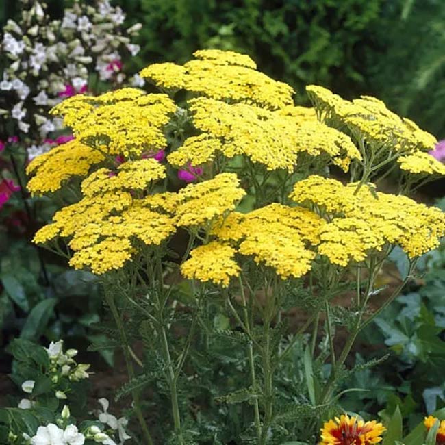 Yarrow’s feathery leaves attract predatory insects that feed on aphids.